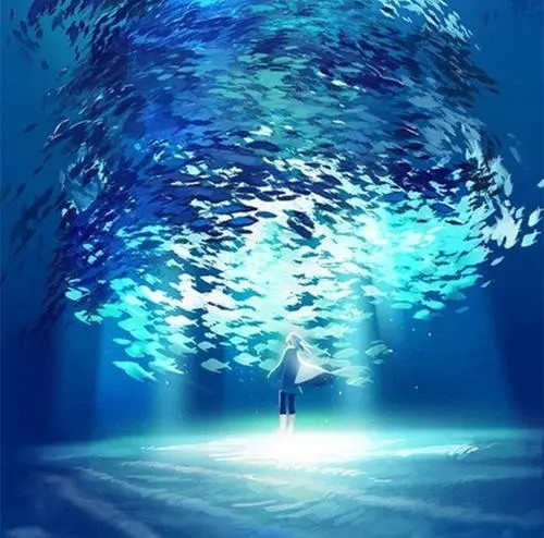 萌时骨惊讶看着鱼周围的神秘女孩