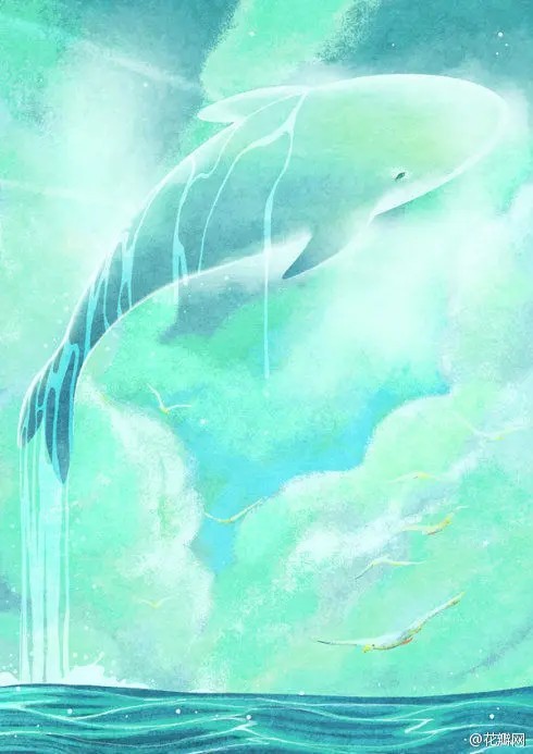鲸鱼游走空中离去,鱼也离去