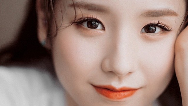 清澈明亮的瞳孔,弯弯的柳眉,白皙无瑕的皮肤透出淡淡红粉,粉嫩的双唇如玫瑰花瓣娇嫩欲滴。