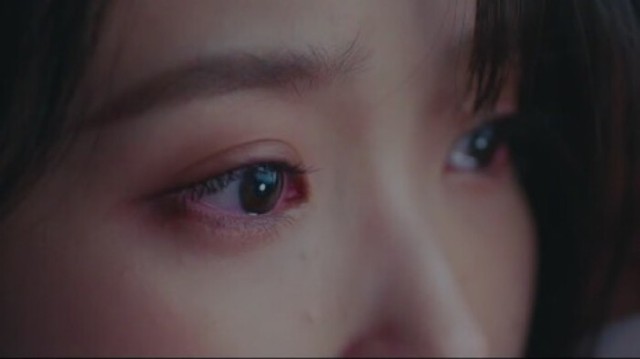 清澈明亮的瞳孔,长长的睫毛微微地颤动着,仔细看好像还有泪珠挂在上面。