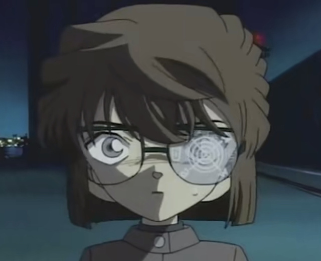 小哀利用备用的追踪眼镜跟到了这里,从车上下来,慌张地向柯南跑去