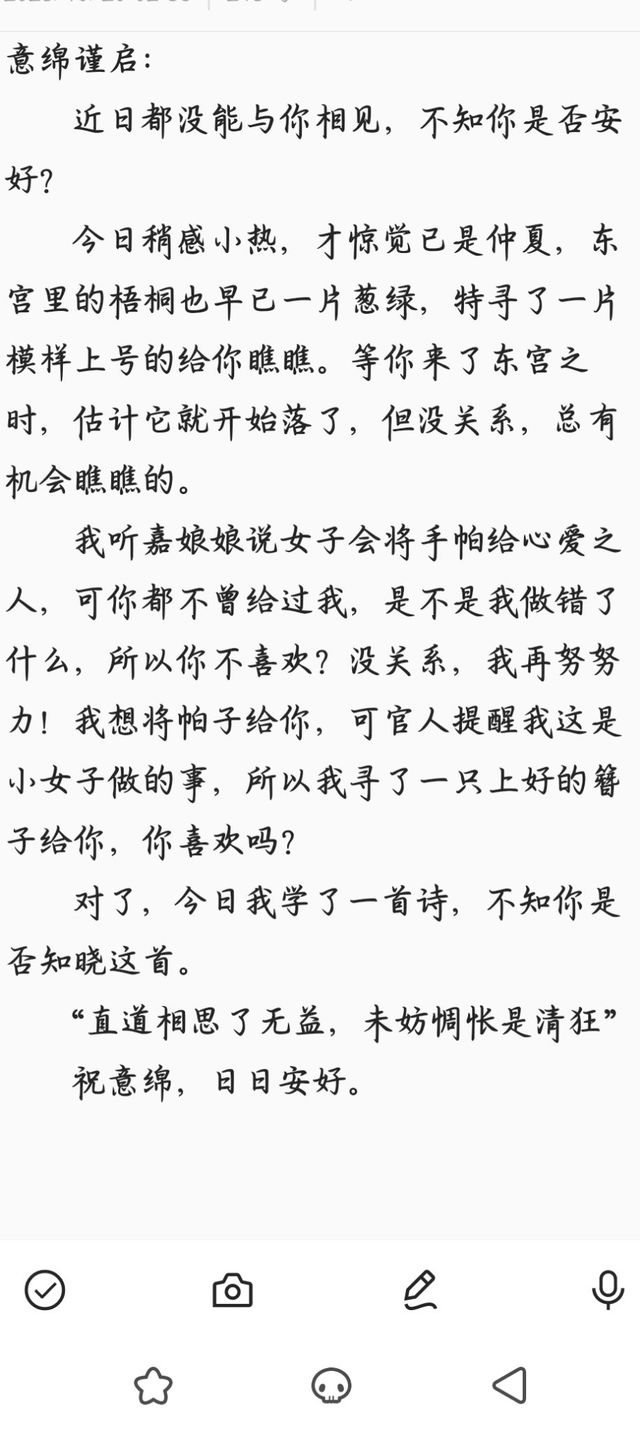 鹿宛清世勋啊,这段时间我也不知道我过得好不好,其实我见过你的。那日我去乐芜那的途中,有官兵在静谷寺把守,我便在远处偷偷的看着你。[自嘲]
