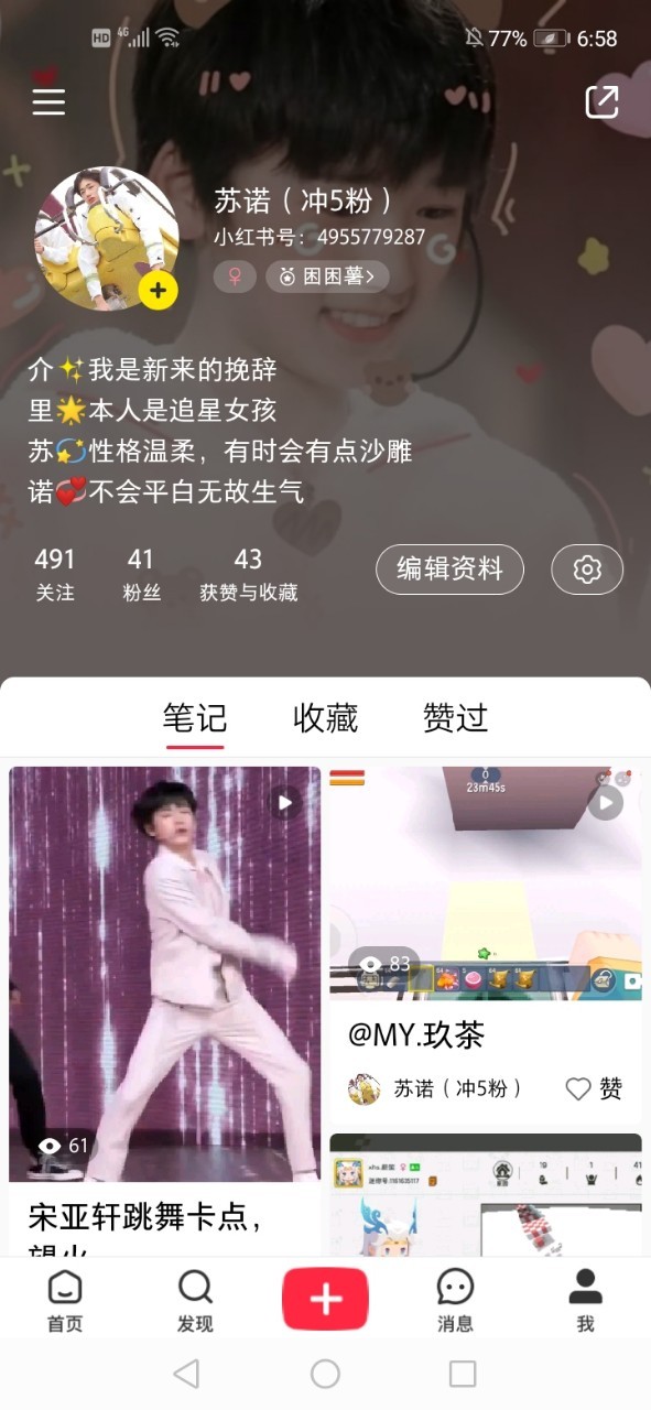 我所有的粉丝我都有回关,会发一些迷你世界的视频,发和宋亚轩有关的会比较多