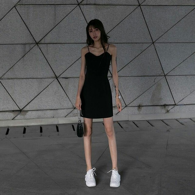 吊带短裙把糖糖百褶的皮肤全部展现了出来