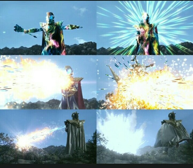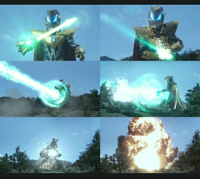 随着捷德使出长枪火花,一道绿色的绚丽光线,向着贝利亚直冲而去。