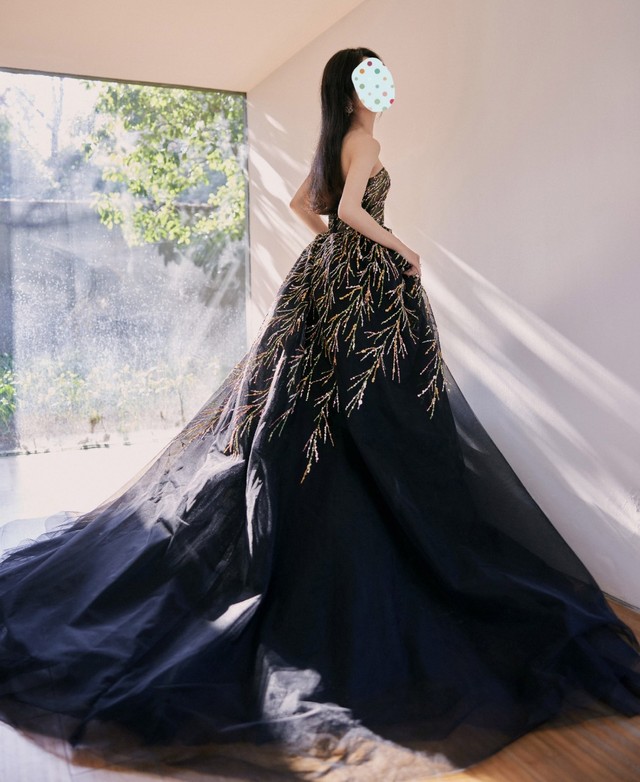 安然指着蓝血最新出的新款,黑色刺绣抹胸长裙,上半身是黑色网状的设计,其余地方增加了刺绣设计