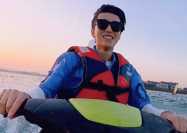 王俊凯玩摩托艇,然后晓东玩帆船了。