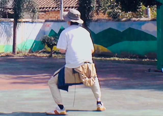 随着大川哥拿着摄像机后退,子健叔很“风骚”的走起了一点假模特步。