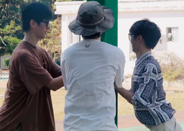结果大川哥和子健叔又出了更多奇葩的热身姿势,最后带动着昊然哥也跟着动起来。