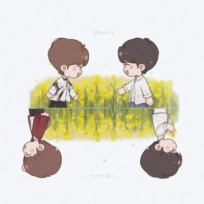 肖战闭上眼睛,感受着一阵微风吹来,一阵花香。王一博在肖战身后看着他。