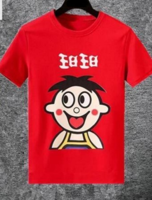 此时这张设计稿上铺着一张大T恤,全身大红色,而中间贴着一张大大的旺仔!