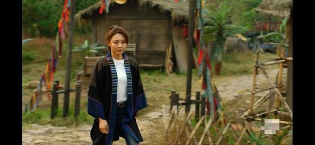 路过其中一间茅草房子,屋檐下倚靠着个姑娘,她似乎在愣神