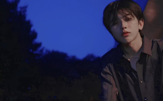 月光倾泻而下,少年好看的眉眼有一半浸没在这皎洁的月光中。