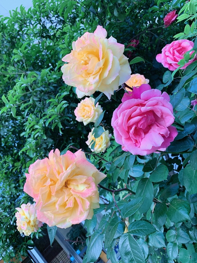 温蒂很喜欢那朵粉白色的月季花。