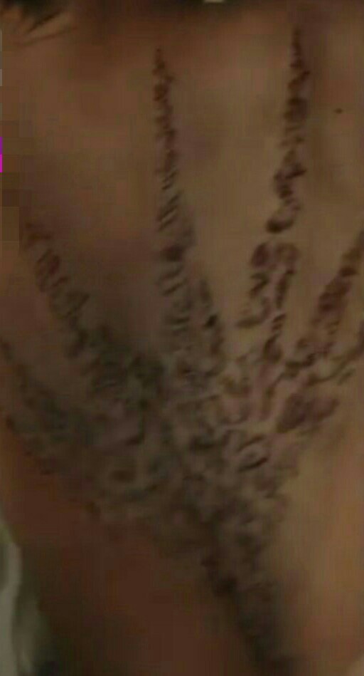 望着镜子中的伤疤,黎簇心中只有一句话:这是什么鬼东西?他的整个背上,刻着一张极其诡异的图形,而且完全是用刀割出来的,那并不是一刀两刀,而是几百刀刻痕。所有的伤口都结痂了,形成了无比恐怖的伤疤。
