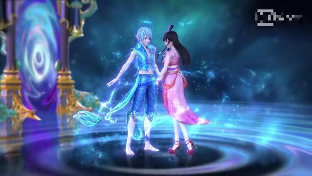 另一边,水王子带着灵沫站在灵犀之门穿梭时的隧道上……