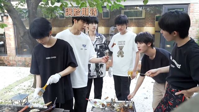 马嘉祺话音未落,就看到你张着嘴咬了一大口刘耀文烤的肠。
