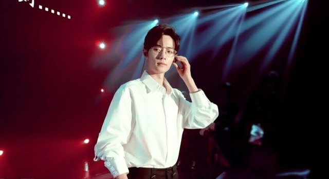 灯光下的肖战,身着白衬衫。简单的剪裁却把他的身材衬托的完美修长,一身洁白给他添上一抹优雅柔和的光芒。金丝眼眶倒让他更显的斯文败类。