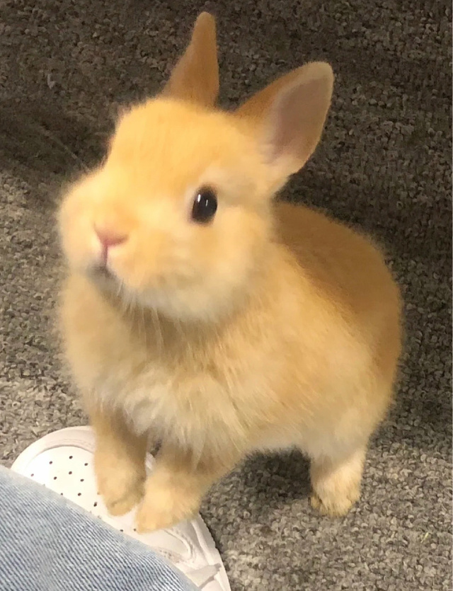 那只兔子似乎是不怕生,一直在我脚边溜达,卡哇伊!我蹲下去将它抱起,怎么有这么可爱的兔子啊!我的少女心在这一瞬间被这只兔子给萌化了