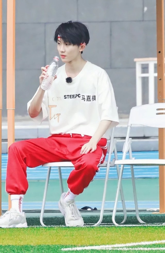 马嘉祺做到了棚子底下喝水