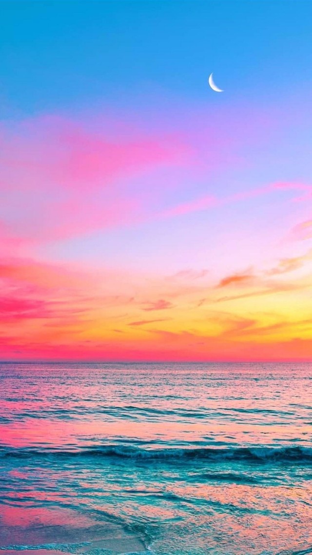 一轮弯月在遥远的天空中浮现,为这场绝美的晚霞,增添了几丝温柔,几丝宁静