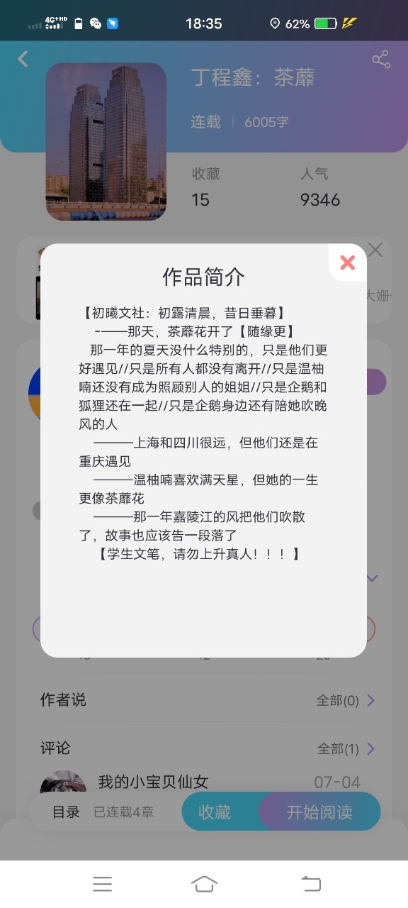 小说名《丁程鑫:茶蘼》