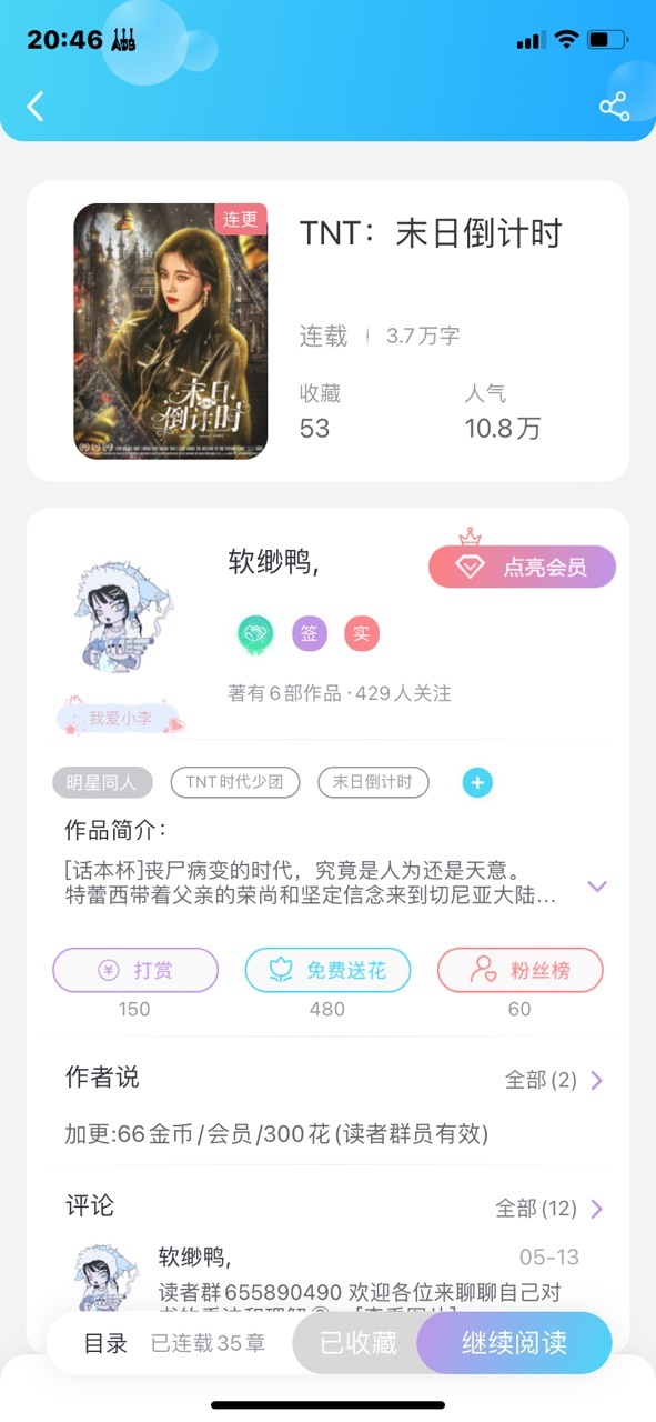 米娜,维纳斯这本灵感确实有,但我文笔太烂了已经写的特别破😩我都无法直视了,也处于瓶颈期的原因就是没办法写得好看,让我熏陶熏陶再重新拾起笔,推推我隔壁的两本书《TNT:末日倒计时》和《TNT:在乙游里的Beta太难当!》