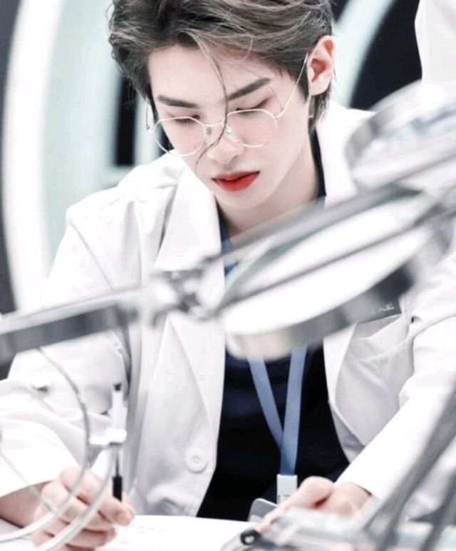 他正在桌前写着什么东西,见你进来他微微抬起了头说道