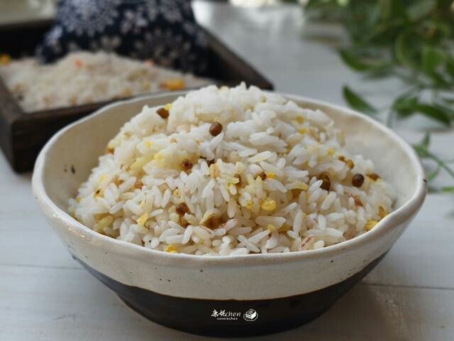 下层是一盘杂粮饭。