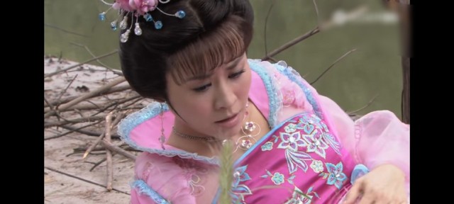 王宝钏吓得身体往桥后一退,被脚下的枯树枝一滑,