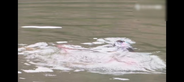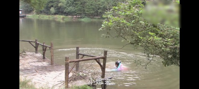 ″啊"地一声叫了起来,又扑通一下掉进了水里,大半个身体沉入了水底,她挣扎着浮起了脑袋,憋着气,