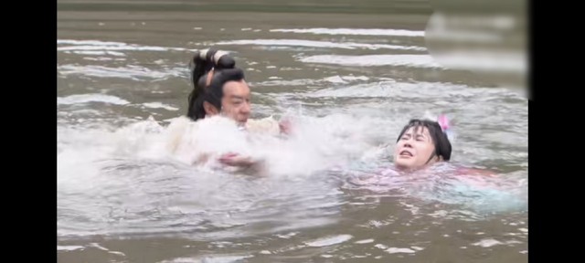薛平贵立马放下了包袱,奋不顾身地跳入水中救那王宝钏去了。