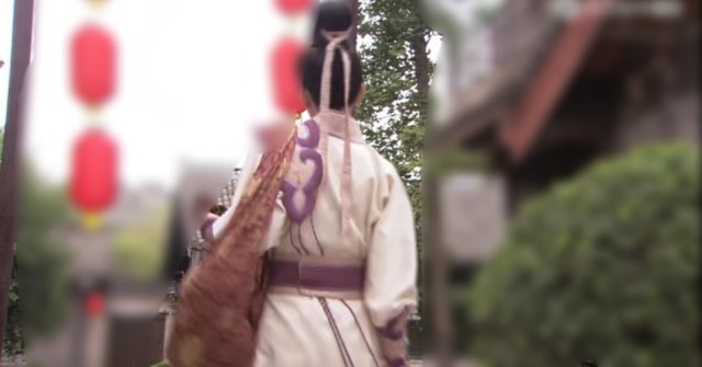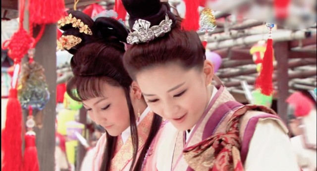 代战女扮男装,白紫袍下腰间缠着紫色束带,是个绝美女娇郎。她背着一个紫色包袱,拉着表哥凌霄来到了一家卖女儿家装饰品的小摊上,摊主是位头上带着粉色大花,虎背熊腰的大姐,看样子是位已婚妇女。旁边有一个身穿粉色华丽衣服,身材风韵的姑娘正在挑选着东西。代战看着那些女儿家的东西也是入了神,一脸欢喜与陶醉,她也想买这里的东西。