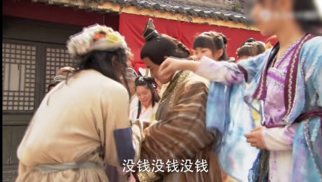 葛青乞丐装"欸,大哥、张伟,你们看,我讨到银子了。是这位好心的姑娘给我的!"