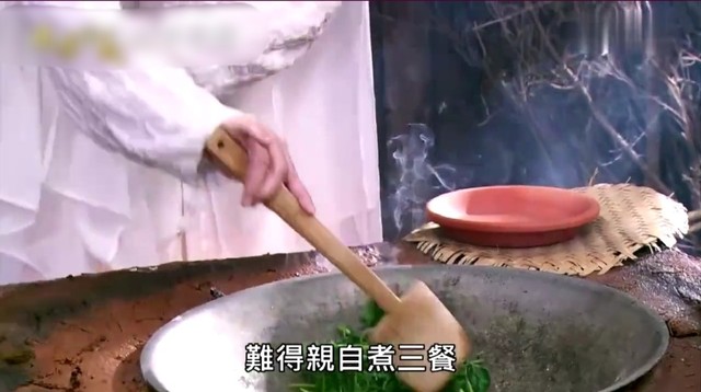 为了节省时间,这期间,莺儿帮她一起折菜,洗菜,切菜,其后王银钏还和莺儿分配好彼此的工作,她命莺儿拾掇一旁的柴火放入灶台,用火起子点燃灶内的柴火,叫莺儿帮她在一旁添柴看火。王银钏则是在看到锅子冒了白烟,就加入了脂膏(猪油),然后就放入了事先清洗干净的青嫩的青菜心。拿木勺子翻炒了几下,快炒熟的时候加入了适当的调料,又翻炒了几下将调料融入菜心,将菜心炒熟。