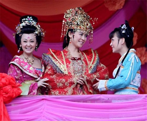 绣楼二层,红粉纱帐,张灯结彩,一派朝气蓬勃的样子。王宝钏在姐姐王金钏和丫鬟小莲的陪同下奉指绣楼招亲,几人脸上皆挂着暖意洋洋的笑容。