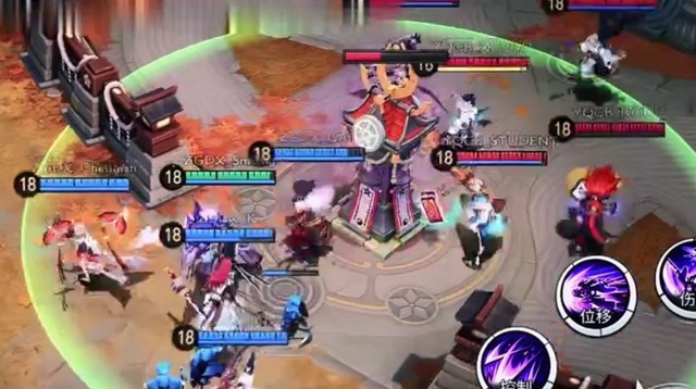 ZGDX战队带着兵线,冲进YQCB战队的高地,强行逼塔。