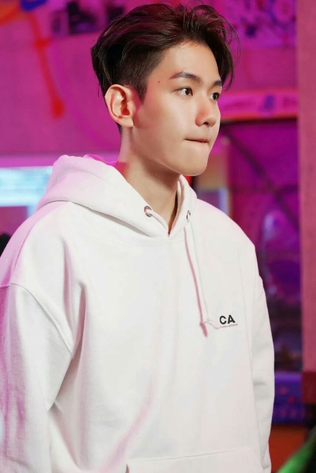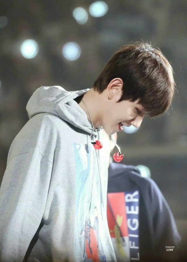 边伯贤穿着白色的卫衣,在这种昏暗的场合,显得格格不入,顺毛短发乖巧的不行,低着头,笑容单纯,真真生了副奶狗样儿。