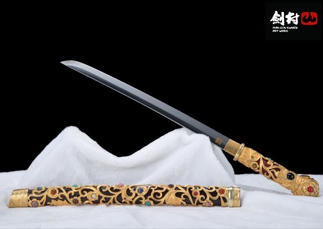 这是一把通体镶金的刀,刀身和刀柄还镶嵌着宝石。