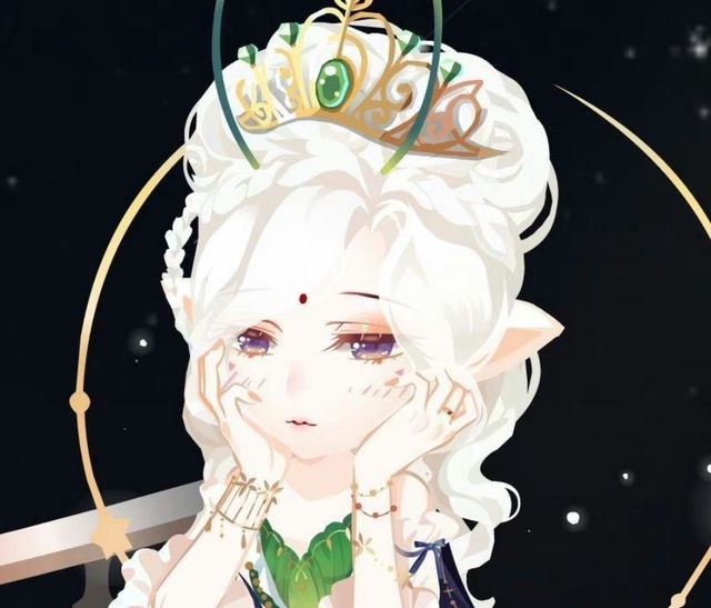 在床旁边的桌子上面有一个皇冠👑,上面有一个翠绿色如同流动的液体一样的宝石在上面。