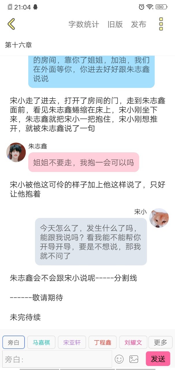 朱志鑫好的,小小(脸红了,躺在宋小肩膀上蹭了蹭宋小的肩膀)