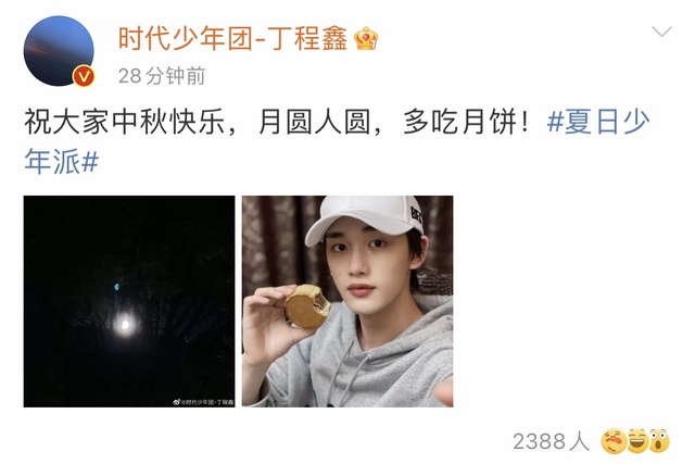 丁程鑫祝大家中秋快乐,月圆人圆,多吃月饼!