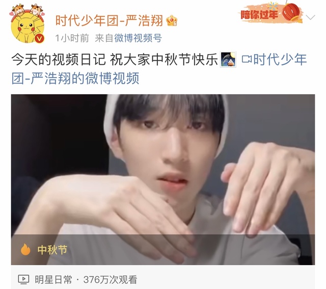 严浩翔今天的视频日记 祝大家中秋节快乐🎑