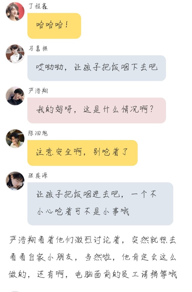 丁程鑫那就我俩吃吧,来,祺祺,尝尝这个大鸡腿