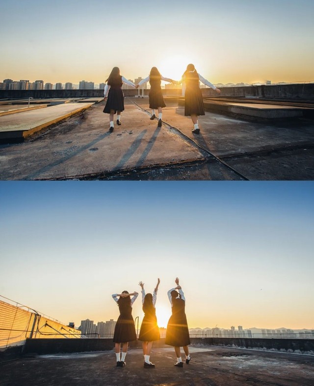 这个是她们八年级的时候走学校天台上拍的。