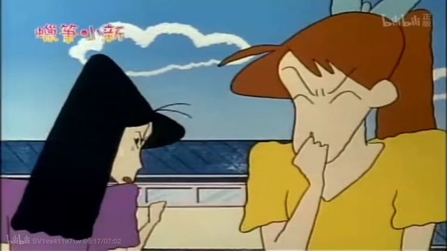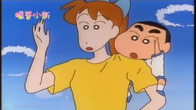 吉永老师最讨厌松阪老师和她唱反调了,立马反驳,小新爬上吉永老师的肩头帮腔。