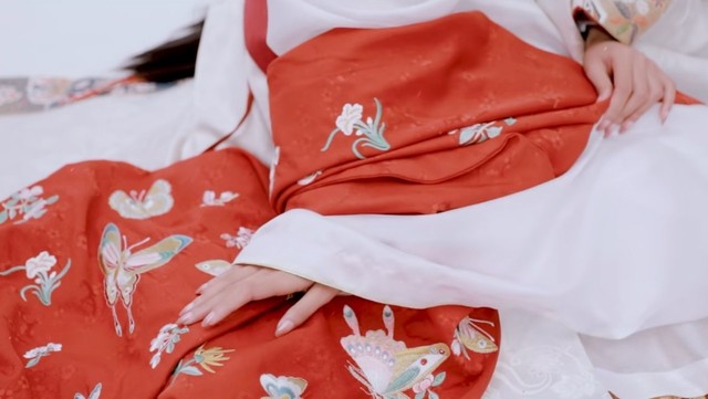 红衣佳人的脸上挂着两行清泪,杯中紧抱着一雕花盒。