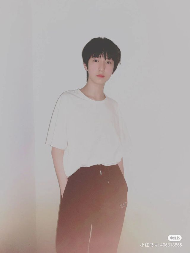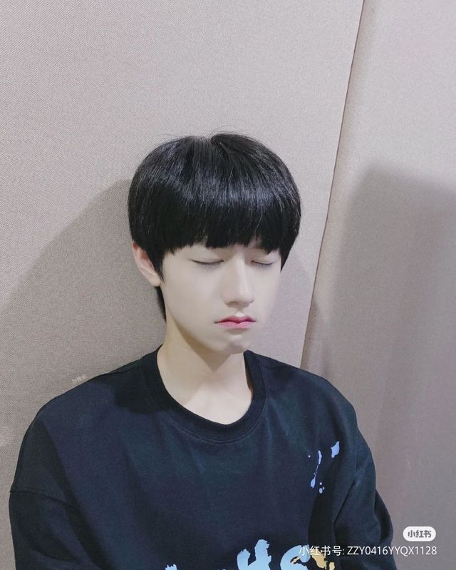 是朱志鑫,男孩刚刚洗了澡,又洗了头发。头发乖乖的,一起往下变成了蘑菇头,显得很乖巧