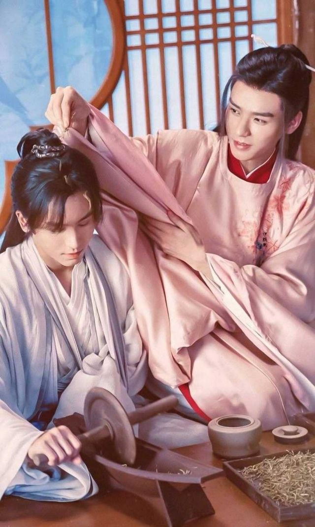 温客行在他旁边帮忙。说是帮忙,但却时不时的来捣乱。这会儿,他看着周子舒磨药磨的认真,眼眸微动,眼里含笑,拈起一点药草就往周子舒头上撒去。那药草勾勾缠缠,大半从周子舒头上落了下来,但还有几片药草,调皮的不肯下来,挂在了周子舒额前的发丝上。