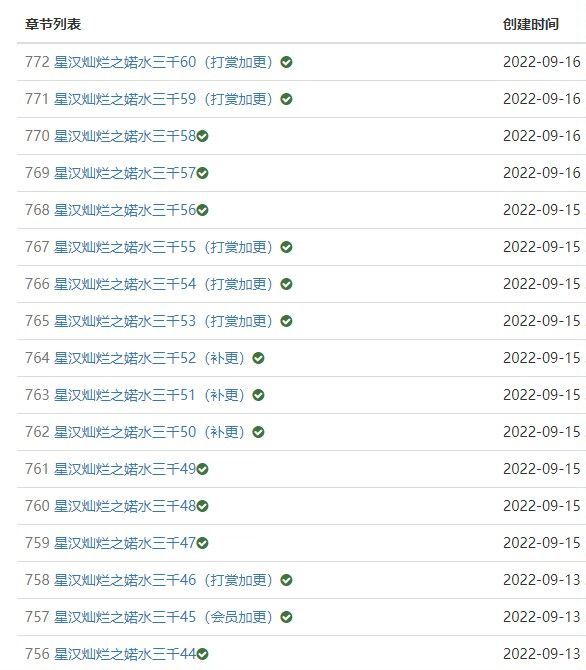作者大大之前统计的打赏加更、会员加更以及补更9.14的三章,全都已经补完了,谢谢大家的支持。两章会员加更放在晚上。加更数据如下: